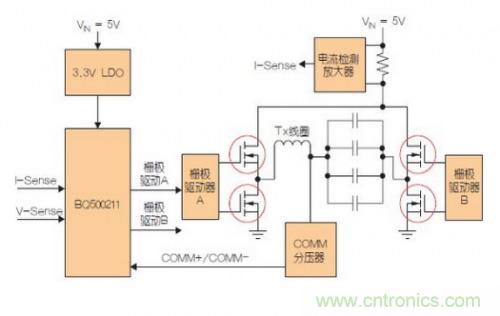 Qi發(fā)射器控制器擁有輸入功率限制選項,至發(fā)射器的輸入電流可被限制在500mA,從而允許通過USB端口或小型電源適配器供電運行。bq500211發(fā)射器的穩(wěn)壓電路有3.3V的LDO穩(wěn)壓器構成輸出芯片供電,LDO的最大優(yōu)勢就是PNP管只會帶來很小的導通壓降,滿載的跌落電壓的典型值小于500mV,輕載時的壓降僅有10~20mV。LDO的壓差為:Vdrop = Vsat (LDO 穩(wěn)壓器)。