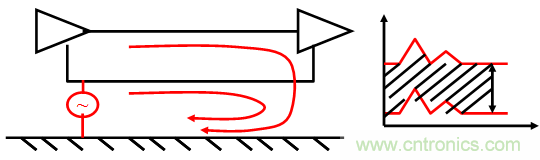 2. 由于電路走線兩端的器件所接的地電位不同,在這個(gè)地電位差的驅(qū)動(dòng)下產(chǎn)生的電流。