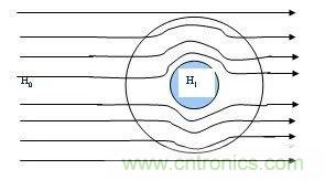 如圖對(duì)照:輸入和輸出的電場(chǎng)干擾可以通過(guò)電容傳輸耦合,若增加屏蔽板,則增加了C4的大小,并且C1也會(huì)減小,對(duì)電場(chǎng)干擾起到衰減的目的;圖二:磁場(chǎng)屏蔽原理