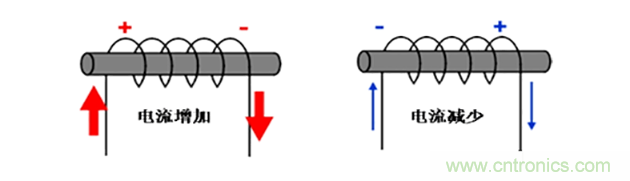 當交流電通過電感時,電流產(chǎn)生的磁場將其他的繞線切隔,因而產(chǎn)生反向電壓,從而阻礙電流變化。反之當電流減少時,則向電流增加的方向產(chǎn)生。