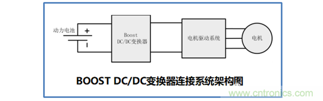 新能源汽車上使用的BOOST DC-DC變換器主要用于高壓系統(tǒng)的升級,將動力電池系統(tǒng)的電壓等級再行升高, 以匹配更高等級的電機驅(qū)動系統(tǒng)。BOOST DC/DC 變換器的系統(tǒng)結(jié)構(gòu)圖下圖所示。