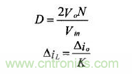 輸出濾波電感值的計算首先要滿足輸出電流紋波△i0的要求,在滿足紋波要求的前提下,盡量選擇較小的電感,以提高變換器的動態(tài)性能。