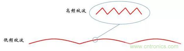 ?高頻紋波:來自開關(guān)切換的周期,開關(guān)電源不是線性連續(xù)輸出能量,而是 將能量組成一個(gè)個(gè)包來傳輸,因此會(huì)存在和開關(guān)周期相對(duì)應(yīng)的紋波。