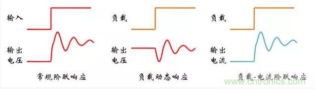 ■通常動(dòng)態(tài)響應(yīng)特指電源的輸入,負(fù)載階躍變化所導(dǎo)致的輸出被擾動(dòng)后 恢復(fù)正常的過程。
