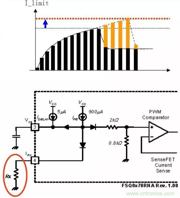在高壓或低壓輸入下開機(jī)(包含輕載,重載,容性負(fù)載),輸出短路,動態(tài)負(fù)載,高溫等情況下,通過變壓器(和開關(guān)管)的電流呈非線性增長,當(dāng)出現(xiàn)此現(xiàn)象時(shí),電流的峰值無法預(yù)知及控制,可能導(dǎo)致電流過應(yīng)力和因此而產(chǎn)生的開關(guān)管過壓而損壞。