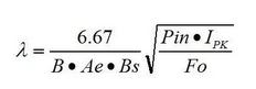 ●可由此大致判斷(λ=1)磁芯是否合適。高效率的設計要求磁應力不能太緊張,也就是變壓器(包括繞組和磁芯)的發(fā)熱不要成為整個電源最突出的。當熱應力突出時,應增加磁芯的 Ae.B 或者使用更好的材質。