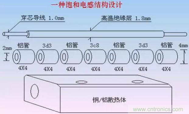 在其他條件相同情況下,相同體積的磁芯的飽和電感緩沖效果大致相當。既然如此,磁芯可以按照最有利于散熱的磁路進行設(shè)計。比如細長的管狀磁芯比環(huán)狀磁芯、多個小磁芯比集中一個大磁芯、穿心電感比多匝電感顯然具有更大的散熱表面積。