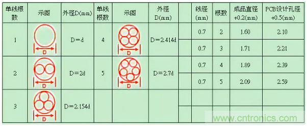 多根飛線(xiàn)直徑計(jì)算參考如下表格: