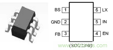 簡單介紹下規(guī)格參數(shù):該芯片工作頻率為500KHz,輸入電壓范圍4.5V~18V,輸出電流為2A,高效率,SOT23-6小封裝。