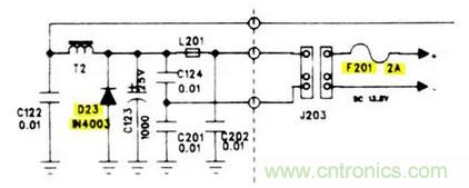 保險(xiǎn)絲(F201)。這是一個(gè)非常典型的電源供電電路。