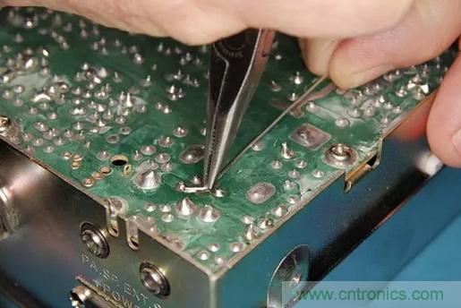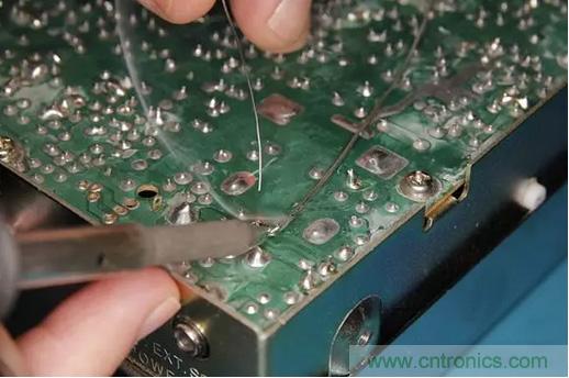 接著焊接導(dǎo)線的另一個(gè)端點(diǎn)到PCB斷開(kāi)走線對(duì)應(yīng)的另一個(gè)焊點(diǎn)上。