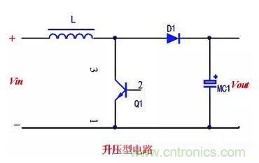 如圖是升壓型電路。工作過程:①開關(guān)管Q1導(dǎo)通時,扼流圈L1儲能。這時 il=uin/lt(t為扼流圈導(dǎo)通時間)。設(shè)導(dǎo)通結(jié)束時的電流為il,因此,儲能為e=0.5i2l。Q1截止后,il將從il開始減少,在L上感應(yīng)出左低右高的自感電動勢。