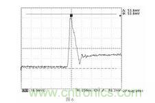 圖中所示的是實際測試的PFC 升壓二極管關(guān)斷瞬間的反向恢復(fù)電流(不加吸收的情況下),在圖4 中,該反向恢復(fù)電流主要通過C6、VD1、VT2 構(gòu)成回路,形成差模輻射,另外,由于由于引線電感的存在,很小一部分的電流會通過散熱器與開關(guān)管VT2 之間的耦合電容C7 向外流,形成共模輻射。