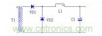 DC/DC 的整流二極管和續(xù)流管的反向恢復(fù)電流會導(dǎo)致二極管的反向電壓出現(xiàn)很高的電壓尖峰,下圖 7 是正激電路的輸出濾波電路。