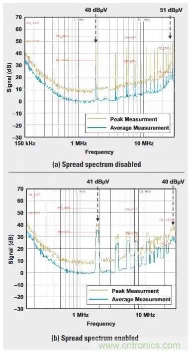 圖2:禁用和啟用擴頻的噪聲比較