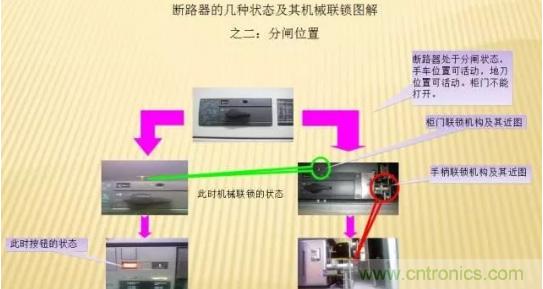 1.防止帶負(fù)荷分、合隔離開關(guān)。(斷路器、負(fù)荷開關(guān)、接觸器合閘狀態(tài)不能操作隔離開關(guān)。) 2.防止誤分、誤合斷路器、負(fù)荷開關(guān)、接觸器。(只有操作指令與操作設(shè)備對應(yīng)才能對被操作設(shè)備操作) 3.防止接地開關(guān)處于閉合位置時關(guān)合斷路器、負(fù)荷開關(guān)。(只有當(dāng)接地開關(guān)處于分閘狀態(tài),才能合隔離開關(guān)或手車才能進(jìn)至工作位置,才能操作斷路器、分荷開關(guān)閉合) 4.防止在帶電時誤合接地開關(guān)。(只有在斷路器分閘狀態(tài),才能操作隔離開關(guān)或手車才能從工作位置退至試驗位置,才能合上接地開關(guān)) 5.防止誤入帶電室。(只有隔室不帶電時,才能開門進(jìn)入隔室)