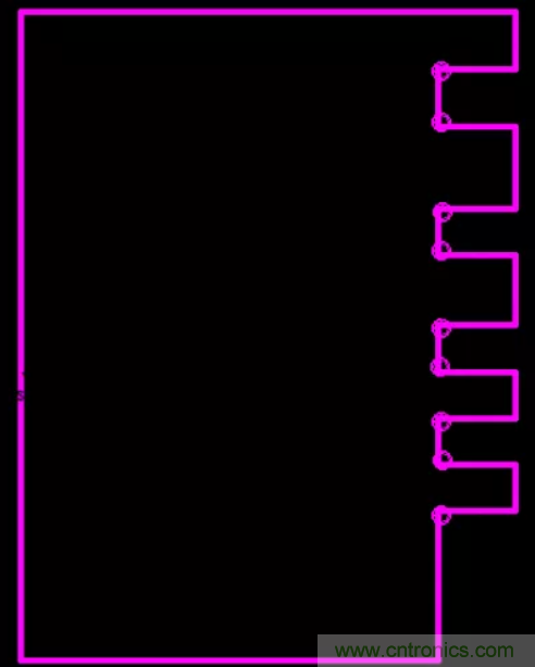 16.畫小板時(shí),在小板引腳的90度拐角處增加一個(gè)圓形鉆孔。