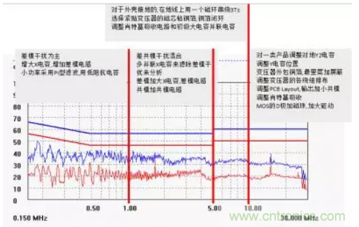 43.一款48W(36V/1.33A)整改EMI案例,僅僅是調(diào)整了肖特基吸收就把30-40M壓下來(lái)。