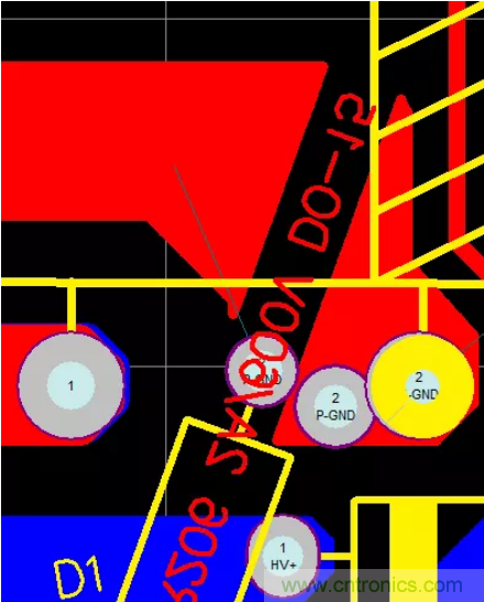 D1這個(gè)元件有個(gè)文字描述的屬性放在了頂層銅箔,如圖