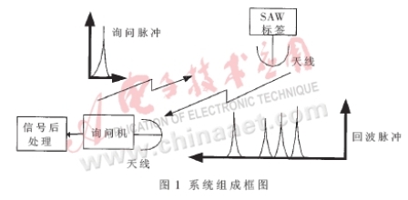 SAW傳感器構成的車輛識別系統(tǒng)由一個裝載在高速運動車輛上的SAW傳感器標簽、一個帶主動式天線的詢問單元和一個信號后處理單元組成。如圖1所示。