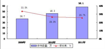 - 到2011年,中國車載視聽系統(tǒng)終端的累計(jì)數(shù)量將會(huì)達(dá)到54.6萬臺(tái)