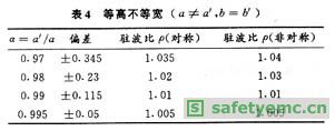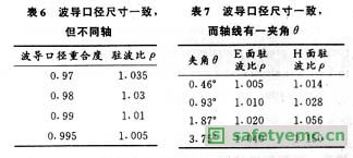 以23mm×10mm的波導(dǎo)為例,在f=10GHz時(shí)不同類型的安裝誤差所引起的駐波比見表4-表7。