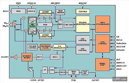 圖一.ADF7020SRD傳送接收器的方塊圖