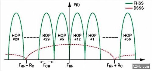 圖二.FHSS與DSSS的頻譜