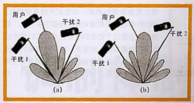 圖3自適應(yīng)陣列智能天線(a)與束轉(zhuǎn)換智能天線(b)的比較