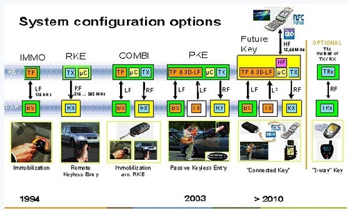遙控鑰匙(RKE)的為人們帶來了很好的用戶體驗(yàn),滿足了人們對(duì)便利性及舒適性的要求,但由于其射頻單向通訊的技術(shù)限制,在安全性上有其自身的不足。恩智浦半導(dǎo)體(以下簡(jiǎn)稱NXP)適時(shí)推出的集成方案(Combi)把引擎防盜和遙控鑰匙合二為一,用一顆芯片來實(shí)現(xiàn),既提高了系統(tǒng)的安全性,又降低了整個(gè)鑰匙的成本,逐漸替代獨(dú)立的遙控鑰匙成為歐美日市場(chǎng)上的主流方案。當(dāng)然,在射頻通訊上其依然保留單向通訊,安全性并沒有本質(zhì)的提高。
