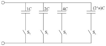 機械微調(diào)電容器既不是集成的也不是電可控的,二極管電容不能充分隔離信號電壓和控制電壓。因此,最好的方法是用電容陣列,如圖6所示,由半導(dǎo)體開關(guān)控制。將圖1 中的C1、C2 用電容陣列取代。當(dāng)電容值在1到50 pF之間時,開關(guān)選用了低電容DMOS開關(guān)。與普通開關(guān)不同, DMOS開關(guān)存在寄生效應(yīng)。在斷開期間,開關(guān)引腳之間、信號引腳與地之間都存在這寄生電容。這些電容使得電容陣列的調(diào)諧范圍變窄,同樣也使天線阻抗的調(diào)諧范圍變窄。這個問題仍然有待于進一步的研究。