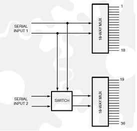 40-789射頻開(kāi)關(guān)模塊可以配置成兩個(gè)18路的多路復(fù)用器(兩個(gè)獨(dú)立的輸出)或一個(gè)單獨(dú)的36路多路復(fù)用器。