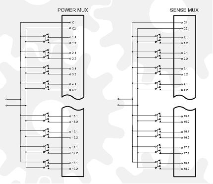 電源和手機(jī)之間的距離一般為幾米,因此就會(huì)很難將手機(jī)中的電池的性能很好地發(fā)揮。采用配有遙感接口的快速反應(yīng)電源就可以解決這個(gè)問(wèn)題,該遙感即可調(diào)節(jié)的是手機(jī)上的電壓,而不是電源的輸出端的電壓。需要四根線路來(lái)實(shí)現(xiàn)這個(gè)功能,兩條電源連接線,兩條傳感連接線。這些連接線需要能夠相互轉(zhuǎn)換,這樣就可以將它們同選定的手機(jī)進(jìn)行連接。這些多路復(fù)用器中的兩個(gè)可以用來(lái)轉(zhuǎn)換36個(gè)手機(jī)中的信號(hào)。在電源的兩端進(jìn)行電源切換,這樣就可以保證電纜的故障不會(huì)造成地面電流流向測(cè)試系統(tǒng)。
