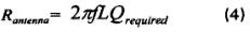 設(shè)天線的諧振電阻為Rpor,理想品質(zhì)因數(shù)為Qreqtuired,則: