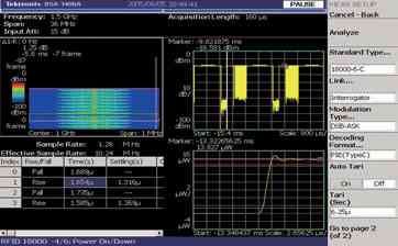 預(yù)編程測量能減少進(jìn)行這些測試所需的建立時(shí)間。例如,ISO18000-6 C 類型的一個(gè)重要測量是啟動(dòng)時(shí)間和關(guān)閉時(shí)間。載波能量上升時(shí)間必須足夠快以保證標(biāo)簽采集到使其正常工作的充足能量。信號也必須迅速達(dá)到穩(wěn)定狀態(tài)。發(fā)射結(jié)束時(shí),載波能量下降時(shí)間必須足夠快,以防止其他發(fā)射受到干擾 [參閱圖3]。