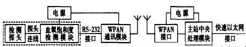 基于WPAN的脈搏血氧飽和度檢測(cè)儀的系統(tǒng)結(jié)構(gòu)如圖1所示。