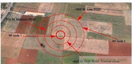 現(xiàn)在,我們將節(jié)點(diǎn)2替換為增益(輸出功率)為0dB的MRF24J40MA模塊。由于節(jié)點(diǎn)1的接收靈敏度為-95dBm,故衰落余量為 35dBm(95dB~60dB)。此外,還存在因環(huán)境[在視距(LoS)內(nèi)]導(dǎo)致的損耗(衰落),這會使信號級別進(jìn)一步降低20dB,此時的通信僅有 15dB到20dB的附加增益。