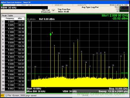 測(cè)試2:單輸入信號(hào)的輸入頻譜測(cè)試