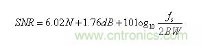 關(guān)于ADC的量化噪聲,貝爾實驗室的W. R. Bennett 1948年發(fā)表的經(jīng)典論文中有一條很有名的公式可以表征: