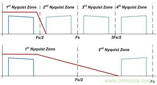 圖1:濾波器對(duì)奈奎斯特速率采樣與過(guò)采樣的影響