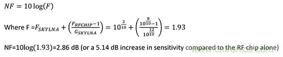 以一個(gè)包含 Nordic Semiconductor nRF52832 和 SKY66113-11 的系統(tǒng)為例。按照規(guī)格,在鏈路預(yù)算為 100 dB 時(shí),該射頻芯片的最大靈敏度為 -96 dB,最大輸出功率為 4 dB。Nordic 的規(guī)格書中不包含 NF 數(shù)據(jù),但此類芯片的典型值約為 8 dB。