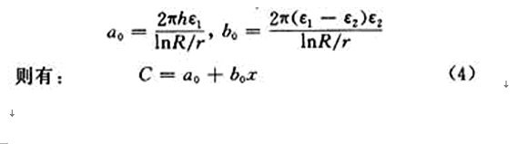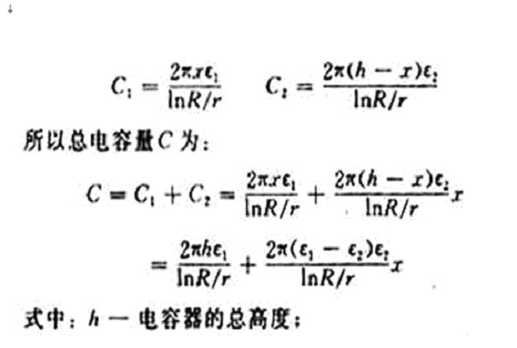 當(dāng)容器的尺寸和被測介質(zhì)確定后,則h,R,r,ε1和ε2均為常數(shù),令: