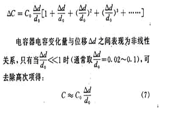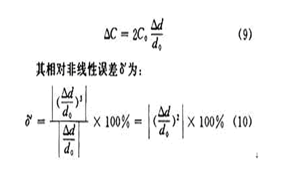 這時(shí)電容器的變化量ΔC才近似地和位移Δd成正比。其相對非線性誤差為: