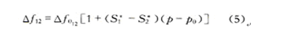 當(dāng)傳感器表面有壓力作用時,無線SAW壓力傳感器的壓電薄膜就會產(chǎn)生形變,薄膜材料的應(yīng)變會使得聲表面波傳播速度發(fā)生變化,從而使聲表面波的中心諧振頻率發(fā)生變化。通過無線檢測SAW壓力傳感器的中心諧振頻率變化,就能得到壓力變化的數(shù)據(jù)。假設(shè)溫度對兩個單端諧振器的中心諧振頻率影響很小,則兩諧振器中心頻率差的變化與所測壓力之間的關(guān)系式可表示為