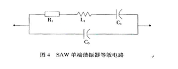 可通過SAW單端諧振器的等效電路對SAW壓力傳感器的整體性能進(jìn)行分析,圖4為SAW單端諧振器的等效電路。