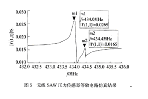 - SAW單端諧振器的等效電路對SAW壓力傳感器的仿真結(jié)果。