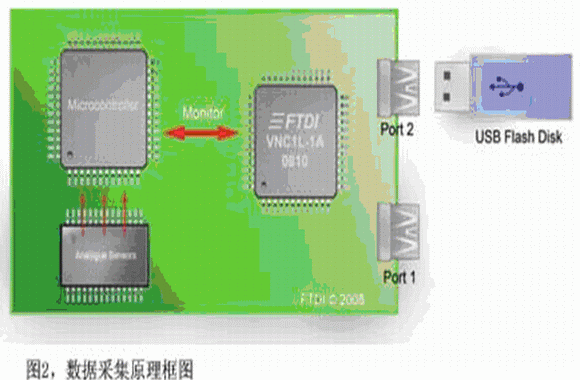 目前市場上有很多種數(shù)據(jù)采集設(shè)備可用于在PC上記錄數(shù)據(jù),如National Instrument的LabVIEW,不過這類設(shè)備的傳感器件開始越來越多地采用USB接口而不是RS232或其他傳統(tǒng)接口。過去在嵌入式系統(tǒng)中應用USB設(shè)備需要性能相對較強的硬件,要帶有USB Host控制器接口、RTOS以及USB軟件驅(qū)動,結(jié)果因USB Host功能實施成本的原因設(shè)計工程師一直都不太愿意在小型8位或16位MCU系統(tǒng)上增加USB設(shè)備。但隨著最新一代智能USB Host控制器IC的推出,與MCU配合使用不僅可為PC應用使用USB數(shù)據(jù)采集設(shè)備,而且還可將數(shù)據(jù)存儲在低成本高容量的閃存盤上。