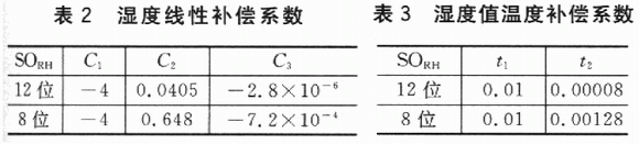 濕度線性補(bǔ)償和溫度補(bǔ)償