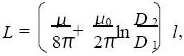 式中l(wèi)為同軸電纜長(zhǎng)度; E為填充介質(zhì)的介電常數(shù);D1 為芯線直徑;D2 為屏蔽網(wǎng)的內(nèi)徑; L為填充介質(zhì)的磁導(dǎo)率; μ0 為真空磁導(dǎo)率. 同軸電纜的分布電容與電感除與其長(zhǎng)度成正比外, 還與屏蔽網(wǎng)的內(nèi)徑和形狀密切相關(guān)。當(dāng)同軸電纜足夠長(zhǎng)時(shí), 其分布電感均比較大; 此時(shí)外力引起的同軸電纜變形只會(huì)引起分布電容和分布電感的微小變化。因?yàn)榉植茧娙菖c分布電感的變化趨勢(shì)相反, 在設(shè)計(jì)該傳感器時(shí), 為了突出分布電容對(duì)傳感器性能的影響, 要在同軸電纜的芯線上串接一個(gè)較大的電感,使分布電感的變化率遠(yuǎn)遠(yuǎn)小于分布電容的變化率。同軸電纜的特性阻抗為