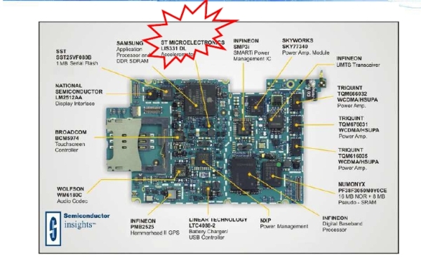 圖2:Iphone3G中的STMEMS傳感器
